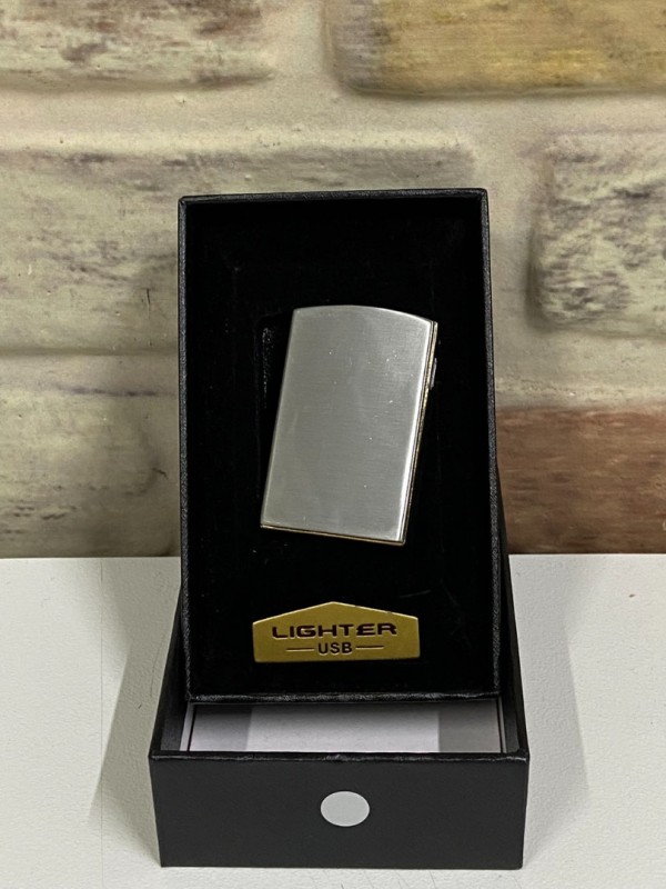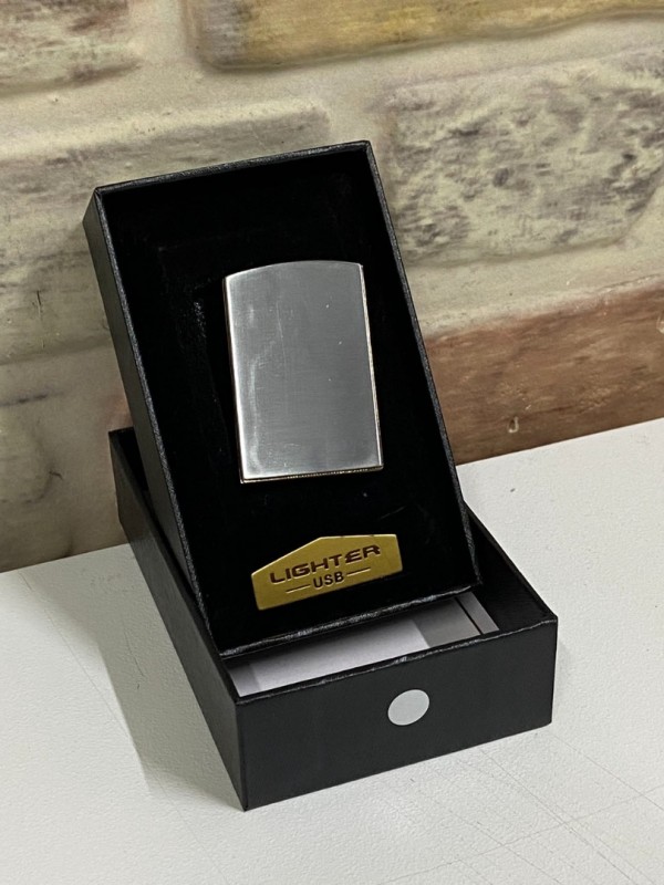 Lighter Marka Usb Şarjlı Elektrikli Gümüş Gri Kişiye Özel Çakmak