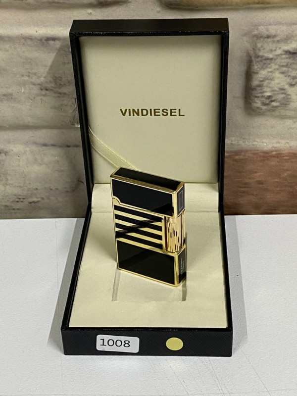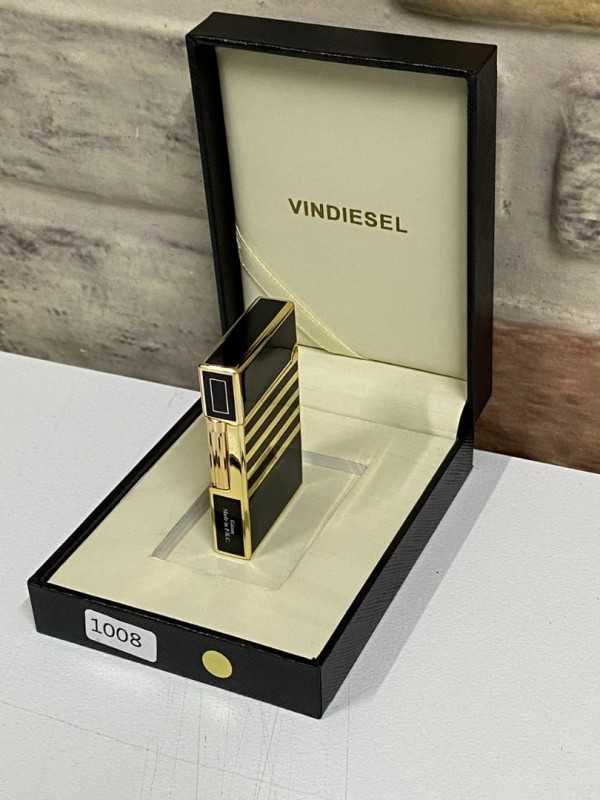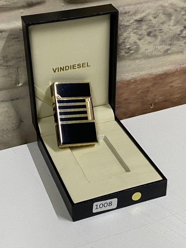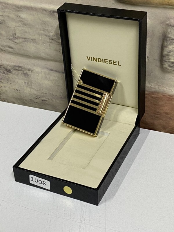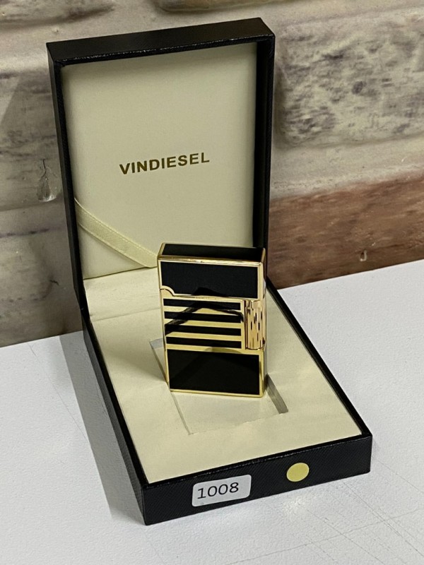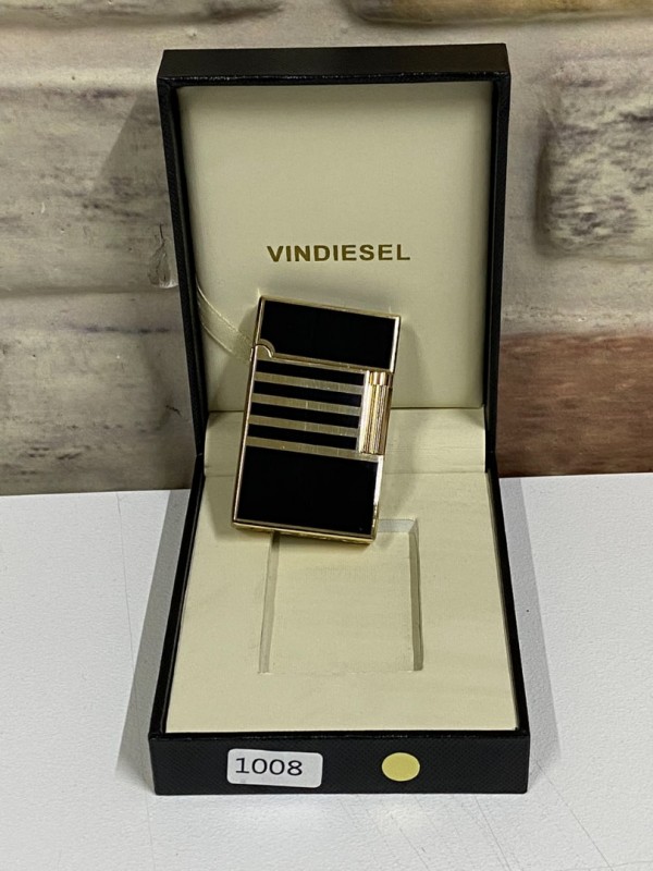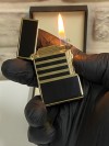 Vindiesel Marka Düz Siyah Gri Renk Yatay Çizgi Desenli Gazlı Model Kişiye Özel Çakmak