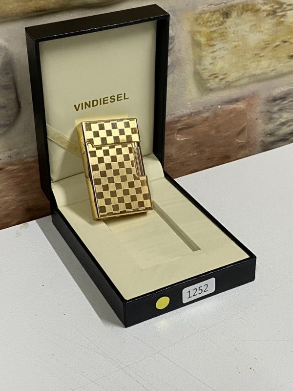 Vindiesel Marka Sarı Renk Kare Kare Desenli Gazlı Model Kişiye Özel Çakmak